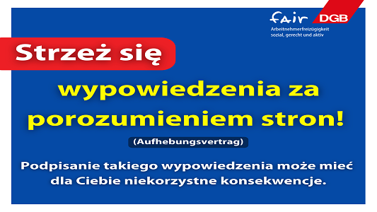 Dodatkowo nieuczciwi pracodawcy często wykorzystują nieznajomość języka niemieckiego oraz niemieckiego prawa pracy swoich pracowników. Zdarza się, że przedłożone przez nich wypowiedzenia za porozumieniem stron (Aufhebungsvertrag) zawierają niekorzystne dla pracowników sformułowanie, że wszystkie roszczenia wynikające ze stosunku pracy zostały już uregulowane.