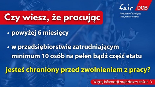Ustawa o ochronie przed wypowiedzeniem (Kündigunggschutzgesetz) utrudnia pracodawcy wypowiedzenie umowy o pracę pracownikowi, jeżeli w przedsiębiorstwie, w którym pracuje