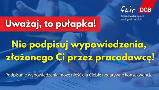 To może być umowa rozwiązująca stosunek pracy za porozumieniem stron (Aufhebungsvertrag) lub oświadczenie, z którego wynika, że zrzekasz się swoich roszczeń!
