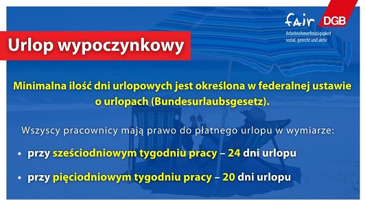 W Niemczech każdy pracownik ma prawo do urlopu. Minimalna ilość dni urlopowych jest określona w federalnej ustawie o urlopach (Bundesurlaubsgesetz).