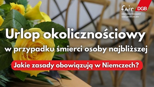 W rozumieniu § 616 niemieckiego kodeksu cywilnego (Bürgerliches Gesetzbuch) śmierć członka rodziny (np. matki, ojca, brata, siostry, dziadka, babci i teściów) jest powodem do czasowego zwolnienia z wykonywania pracy. We wspomnianym paragrafie jest jednak jedynie w przybliżeniu uregulowany czas trwania takowego urlopu okolicznościowego.