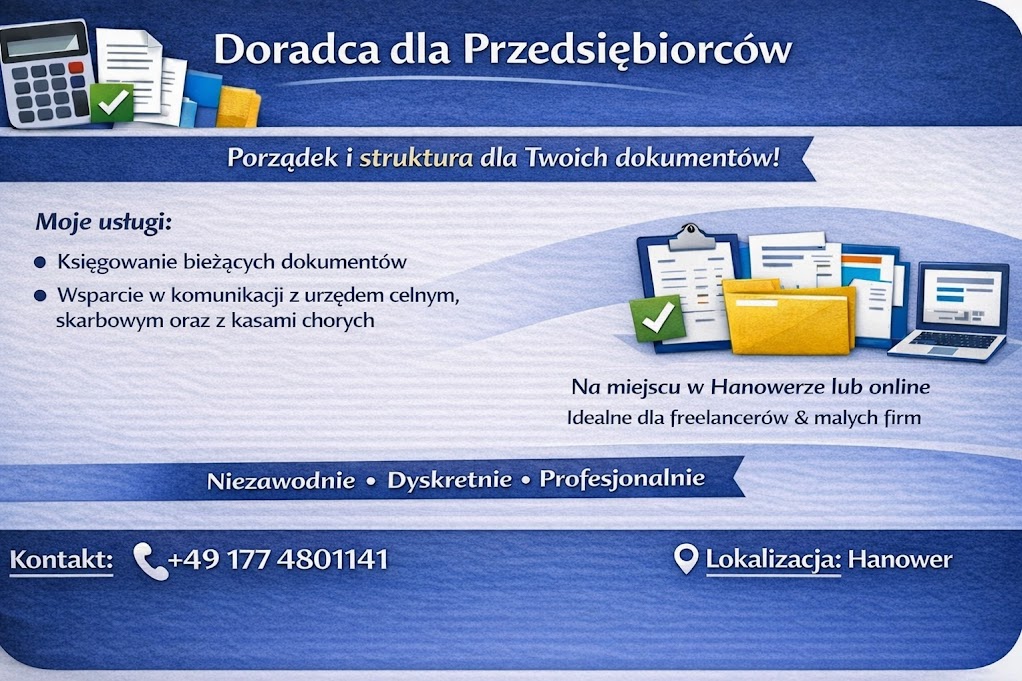 Potrzebujesz pomocy w wypełnianiu druków urzędowych, czy pomocy językowej w urzędzie, u lekarza,itp. Zgłoś sie telefonicznie w biurze Polskiej Misji Katolickiej: 0511-6498504.