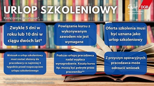 Uznane seminaria na różne tematy oferują między innymi związki zawodowe. Więcej ofert urlopów szkoleniowych znajdziesz również na stronie internetowej www.bildungsurlaub.de